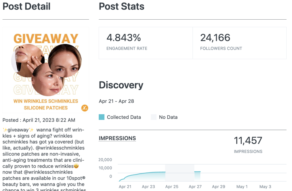 After the announcement of our Wrinkles Schminkles partnership, we hosted a giveaway on our Instagram account and continued to share educational information on the benefits of the anti-wrinkle patches. We also appeared on Wrinkles Schminkles homepage banner.